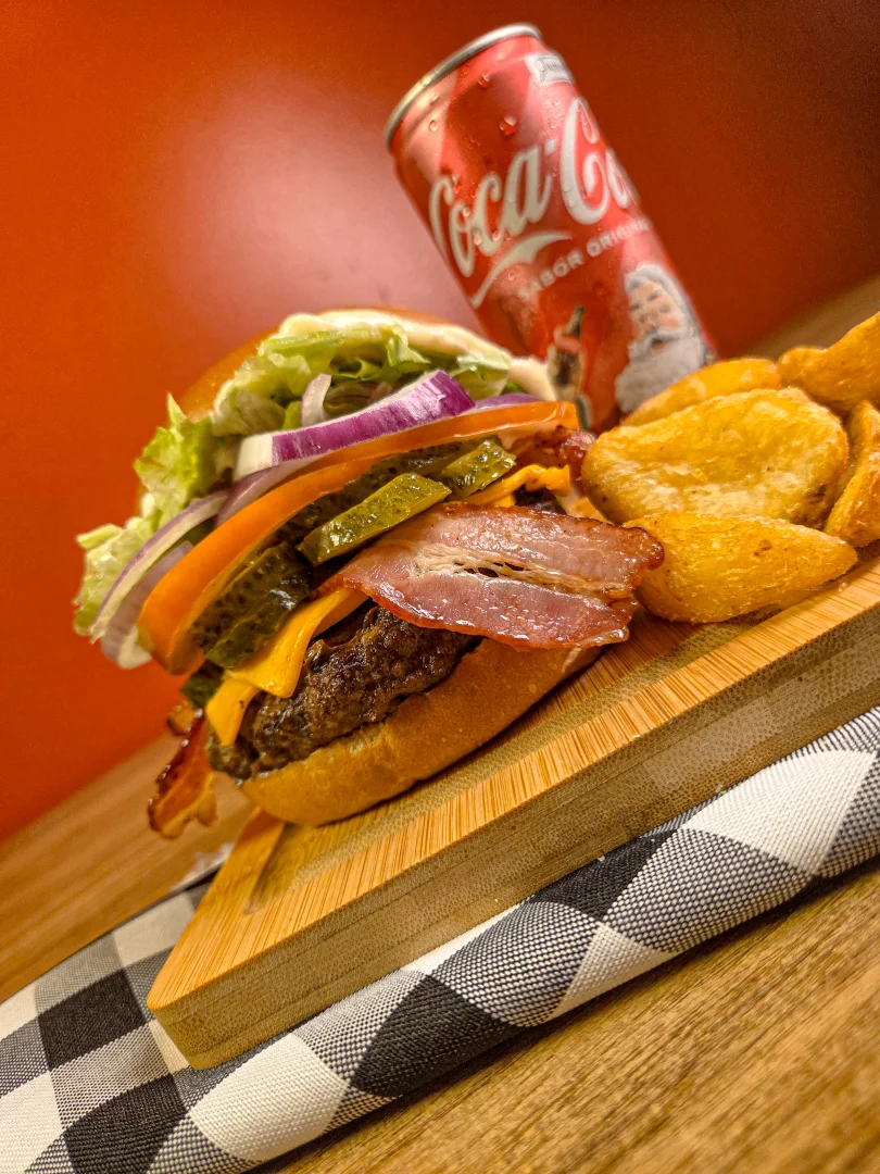 O clássico repaginado no estilo Mr. Moo! Pão brioche fofinho, um burger artesanal de 150g smashadinho no ponto certo, molho especial secreto, cheddar cremoso, bacon crocante, alface, tomate, picles e cebola no capricho. É o sabor que você conhece, mas com aquele toque único do Mr. Moo que faz toda a diferença!