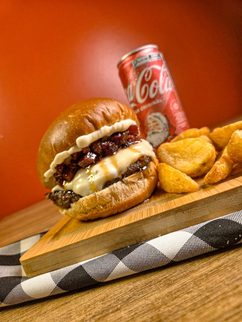 Um mix de sabores que vai te surpreender! O Moo Bacon traz pão brioche macio, nosso blend bovino artesanal de 150g, maionese exclusiva, mussarela derretendo e a estrela do lanche: uma geléia de bacon cheia de personalidade. É doce, salgado e sensacional em cada mordida!